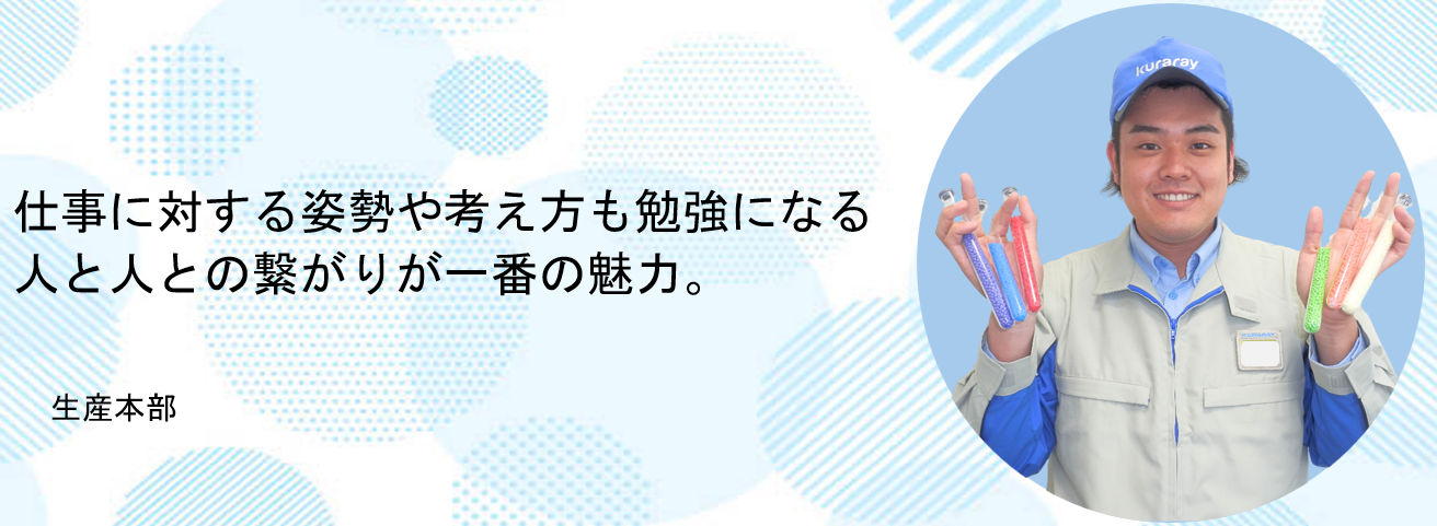 クラレプラスチックスの開発・生産・販売が一体となってモノづくりを行っているメーカーである点に魅力を感じ、入社を決めました。