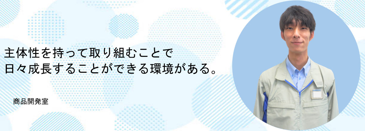若手社員でも新商品の開発に一から携われる点に魅力を感じています。
